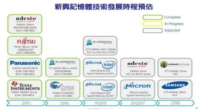根據研究機構Tech Insights估計,包含F(xiàn)RAM、STT-MRAM、3D Xpoint 、CBRAM等新世代內存,都已陸續(xù)進入小量生產階段。 不過,這些新興內存技術中,除了少數(shù)存儲芯片例外,要發(fā)展到能跟NAND Flash、DRAM不相上下的程度,恐怕還需要很長的一段時間,因為DRAM與NAND Flash已具備極為龐大的經濟規(guī)模,即便新興內存技術在性能方面明顯優(yōu)于現(xiàn)有內存,在供貨穩(wěn)定度、成本方面也未必能與現(xiàn)有內存技術相抗衡。