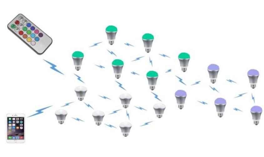 該方案采用巨微創(chuàng)新的MG-Mesh系統架構,用最低成本實現LED自組網和調光調色。手機和遙控器都可以控制。