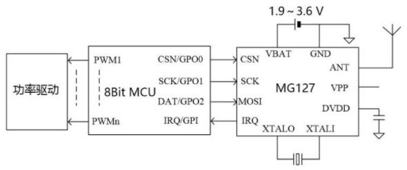 藍牙芯片MG127是具有低功耗、低成本的BLE 收發(fā)器,內部集成了發(fā)射機、接收機、GFSK 調制解調器和BLE 基帶處理。電源電壓1.9~3.6,可以采用一個紐扣電池(3.0v)供電,具備3uA待機電流,20mA@0dBm持續(xù)發(fā)射,18mA持續(xù)接收等特點。MG127 采用DFN3x3 封裝,只需搭配低成本MCU 和少數外圍被動器件,即可實現BLE 遙控、藍牙電子秤等應用。