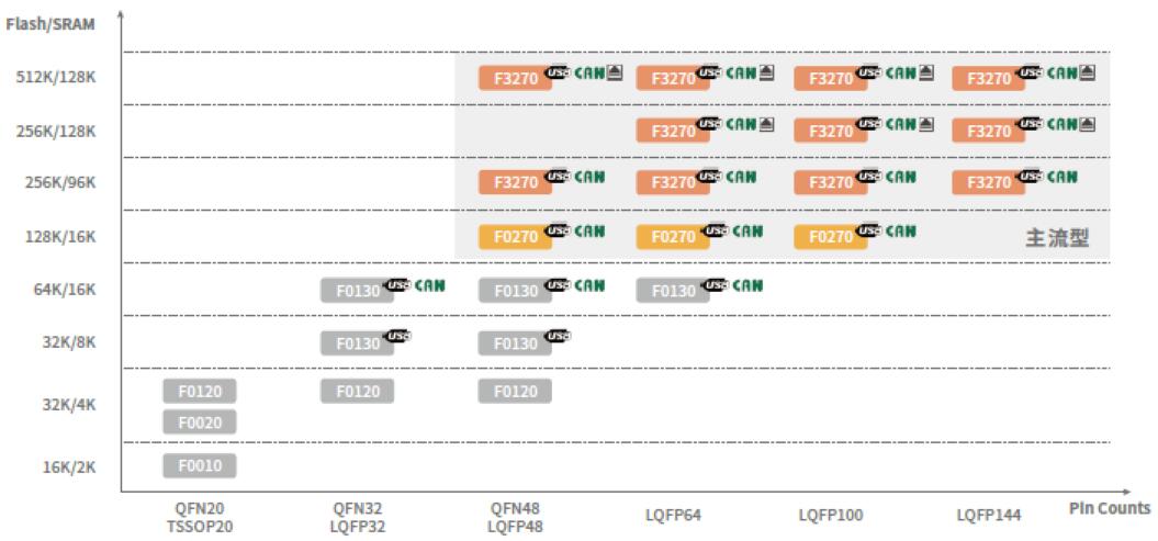MM32F主流型基于96MHz Arm Cortex-M0和120MHz Arm Cortex-M3內(nèi)核。