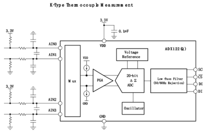 ADX122(Q)內(nèi)部數(shù)字濾波器提供靈活的輸出數(shù)據(jù)速率,從10SPS到3571SPS??构ゎl干擾濾波器可以配置為50Hz或60Hz抑制模式,也可以配置為同時(shí)抑制50Hz和60Hz工頻干擾。在連續(xù)轉(zhuǎn)換模式或單次模式下工作。內(nèi)部濾波器在兩種模式下都是單周期穩(wěn)定的。單次模式轉(zhuǎn)換一次后器件自動(dòng)掉電;因此,空閑期間的功耗顯著降低。ADC轉(zhuǎn)換結(jié)果通過(guò)SPI™接口傳輸。同時(shí)ADX122(Q)可以工作在較寬的電源范圍,這些特性使其非常適合功率和空間受限的傳感器測(cè)量應(yīng)用。