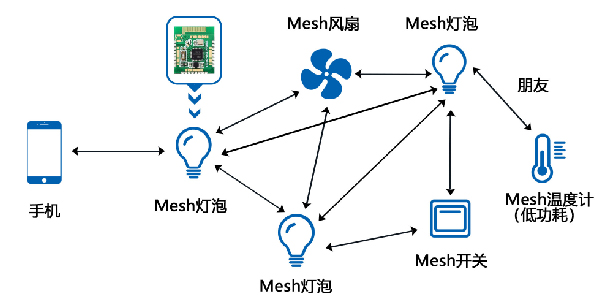 藍牙低功耗網(wǎng)狀網(wǎng)絡(BLE Mesh)是基于藍牙低功耗(BLE)協(xié)議構(gòu)建的一種通信協(xié)議,它能夠讓大量BLE設(shè)備組建為一個網(wǎng)狀網(wǎng)絡,在足夠大的物理覆蓋范圍內(nèi)達成設(shè)備間的互聯(lián)與協(xié)同控制,進而滿足多設(shè)備場景下的通信需求。