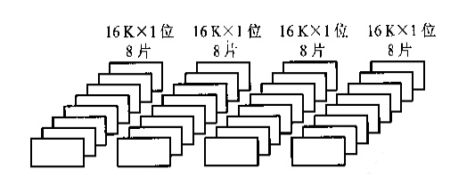 分析:64Kx8位,說明該存儲(chǔ)器是以8位構(gòu)成一個(gè)字,因此,每讀出一個(gè)字,需要選中8片16kx1位的存儲(chǔ)芯片,而一片能表示16k,因此一共需要64/16=4片,根據(jù)組合的原理,一共需要4x8=32片。