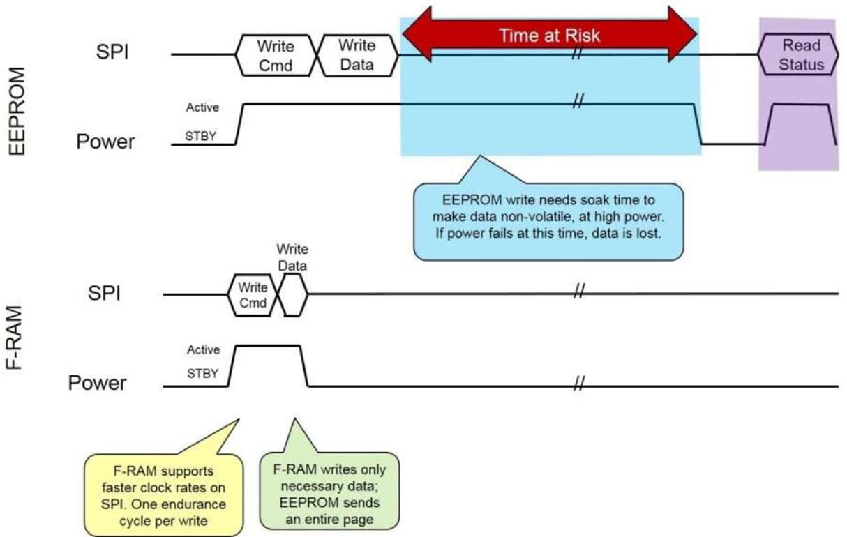 圖2:FRAM的快速寫(xiě)入速度可保護(hù)使用EEPROM設(shè)備時(shí)可能丟失的關(guān)鍵數(shù)據(jù)。(來(lái)源:賽普拉斯半導(dǎo)體)